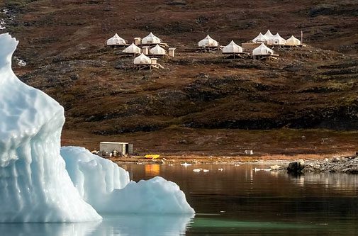 På denne tur bor du en nat i rummelige og komfortable telte i Camp Kangiusaq – en hyggelig og fredelig oase dybt inde i fjordsystemet, hvor du vågner op til stilhed, frisk luft og udsigt over glitrende vand og majestætiske fjeldsider. Her er der mulighed for at komme helt tæt på naturen – om det er på en stille vandretur, en eventyrlig kajaktur blandt isbjerge eller blot med en varm kop kaffe på din private terrasse, mens du spejder efter hvaler og havørne i horisonten.